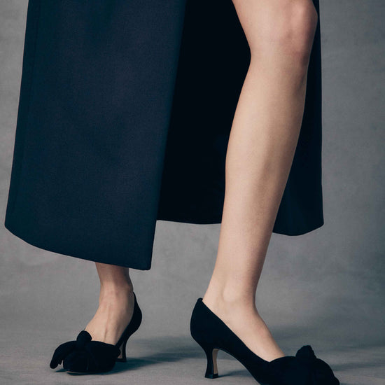 These black suede bow kitten heels are the ultimate go-to for any fashion-forward wardrobe, effortlessly transitioning from daytime meetings to evening soirees.