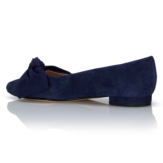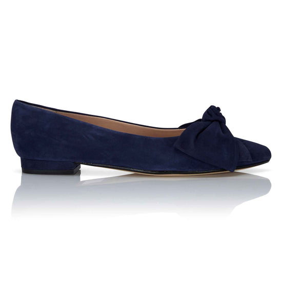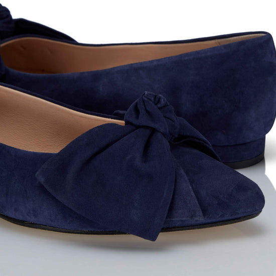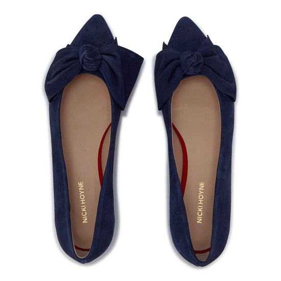 Every shoe collection needs the perfect flat. The Nicki Hoyne Flat Bow Shoes, a chic blend of timeless style and modern elegance. Made from luxurious navy blue suede, these flats are expertly crafted in Spain from high-quality leather and suede for a premium feel. The standout feature is the oversized bow that sits gracefully atop the pointed toe, adding a touch of playful sophistication. Designed for comfort and style, these flats are perfect for those who seek to make a statement without the height of a heel.