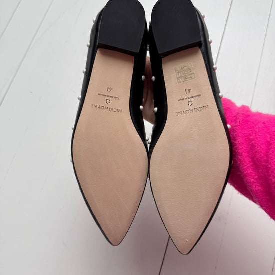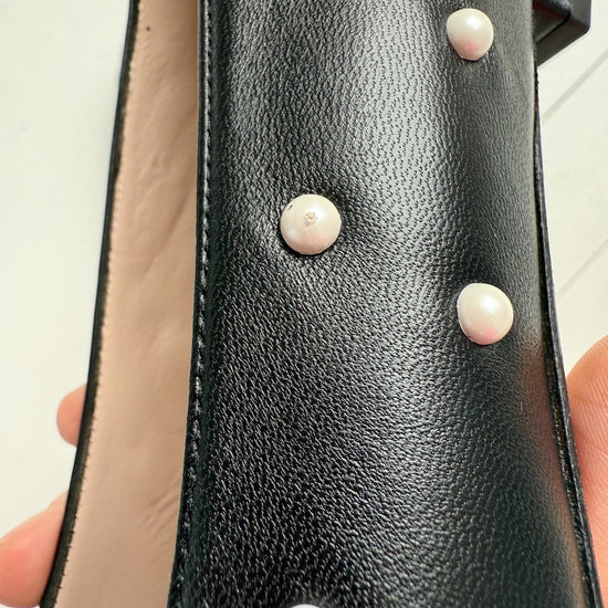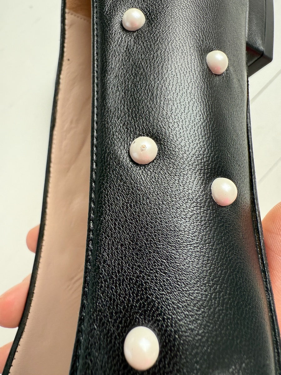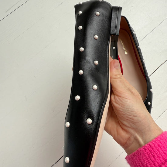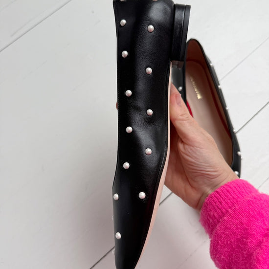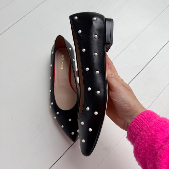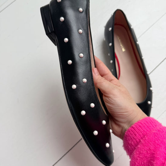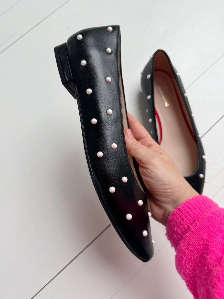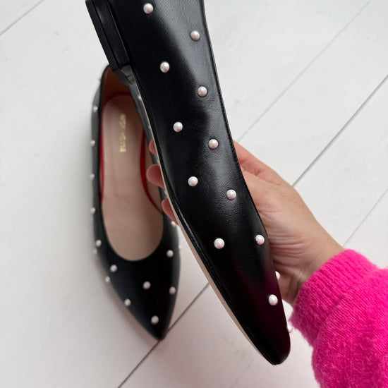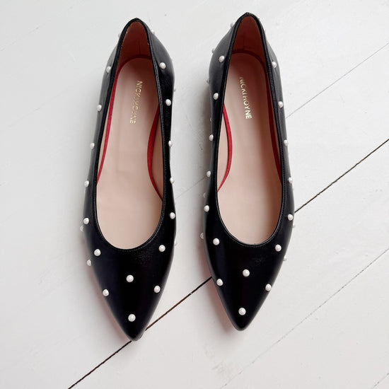 SECONDS - Bon Bon Flat in Black Leather and Pearl Studs