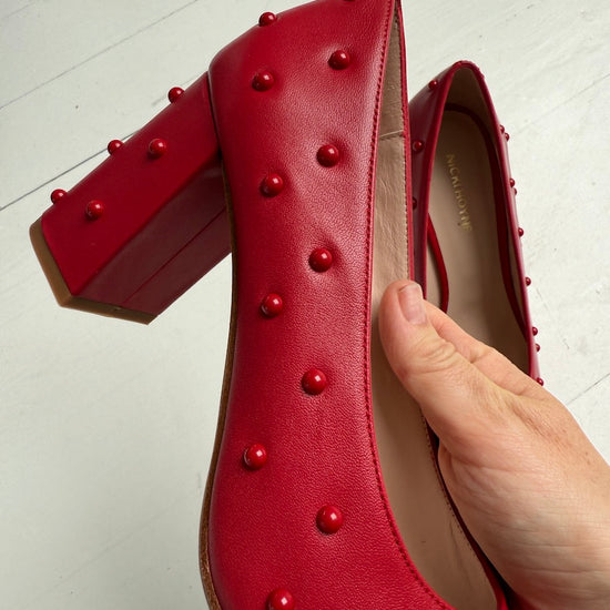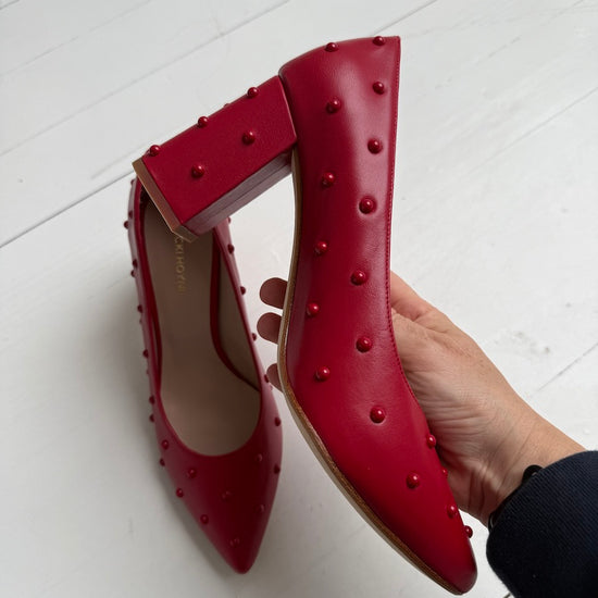 SECONDS - Bon Bon Pump in Red Leather and Red Studs