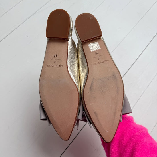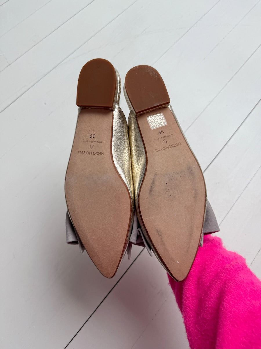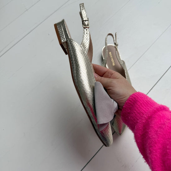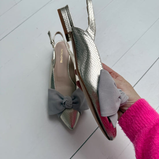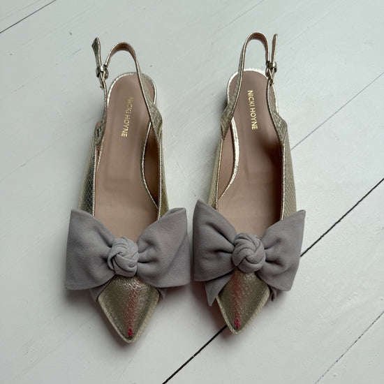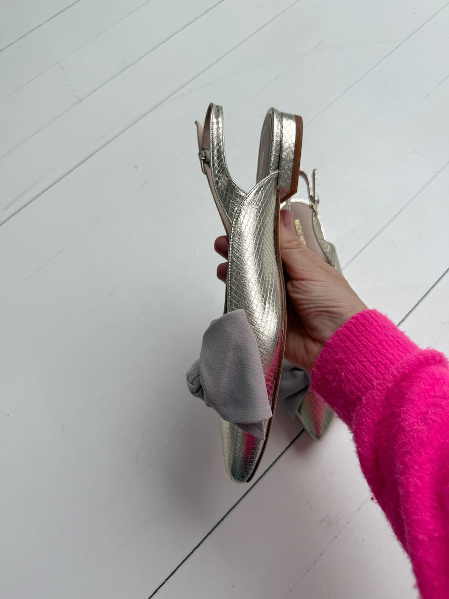ReSELL - Bow Flat Slingback Shoe - Gold/Grey 39