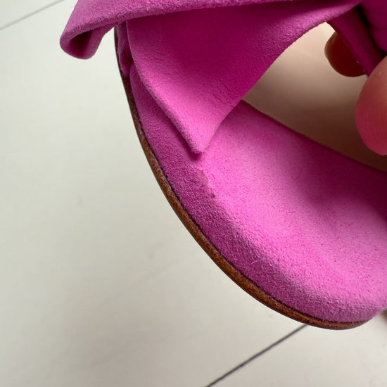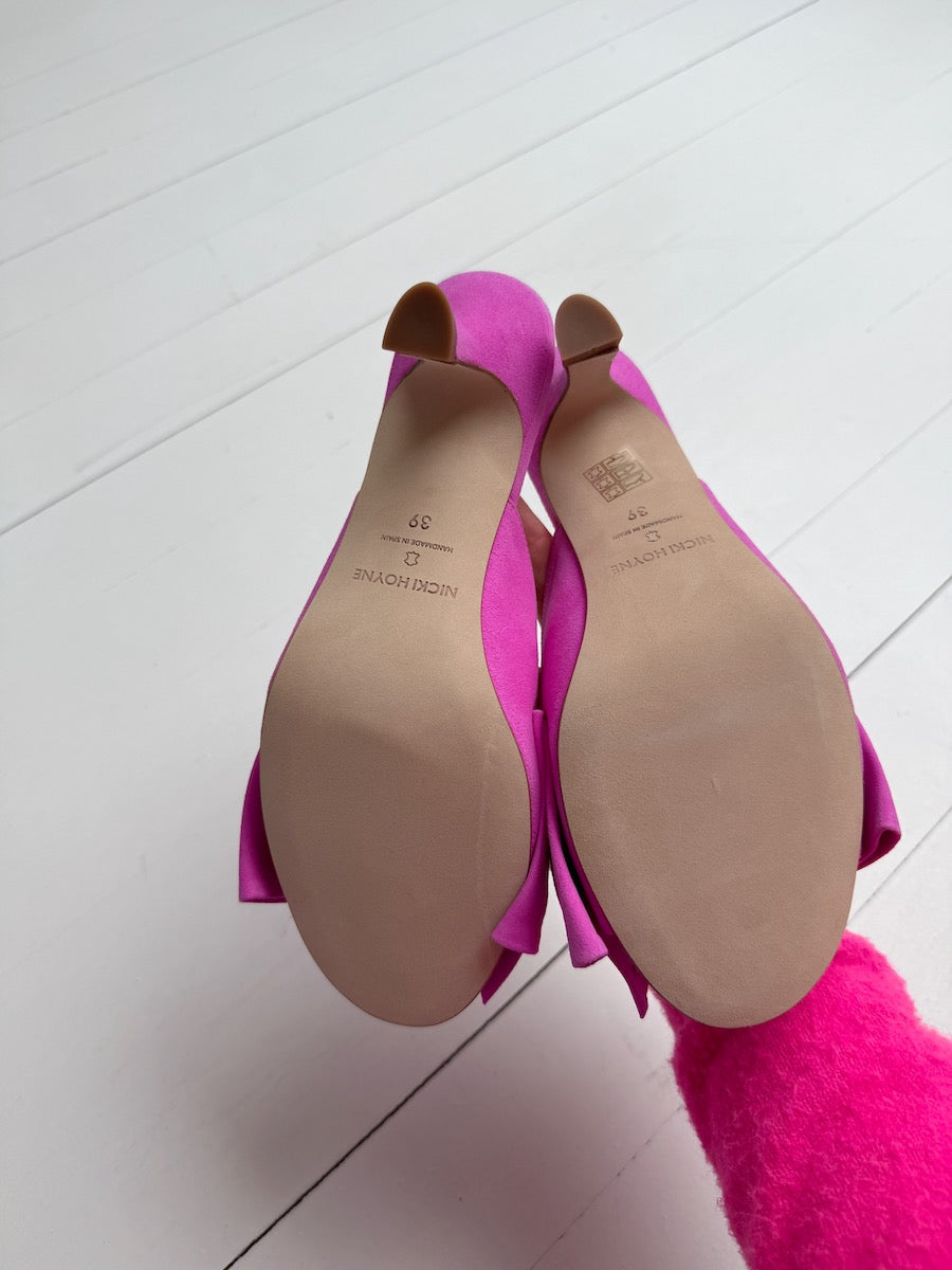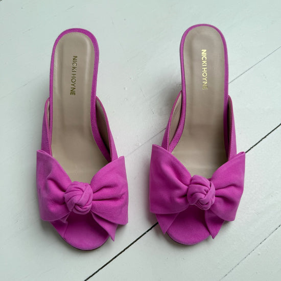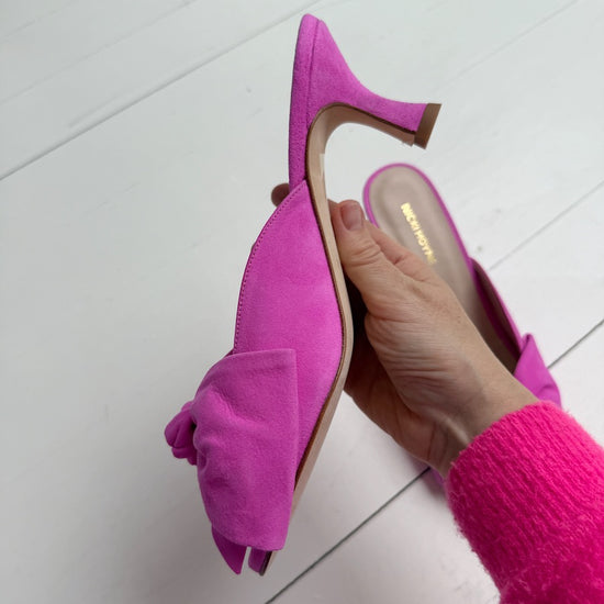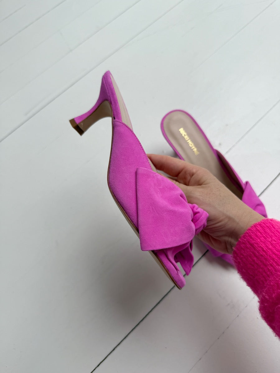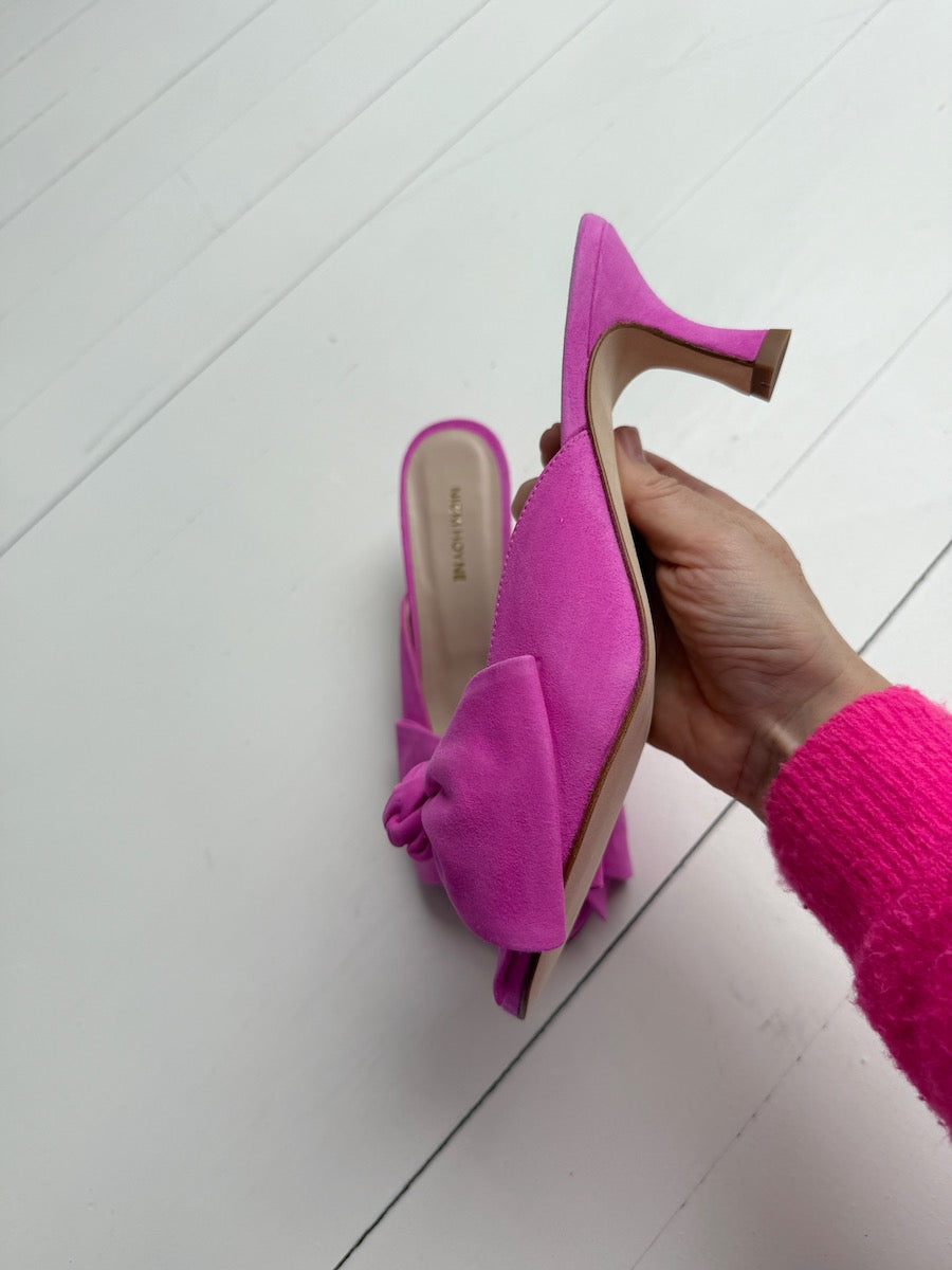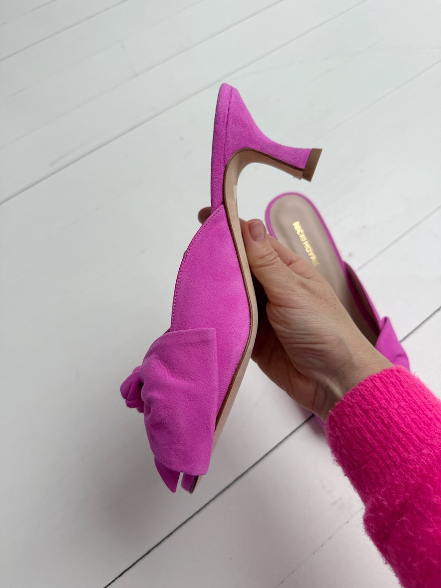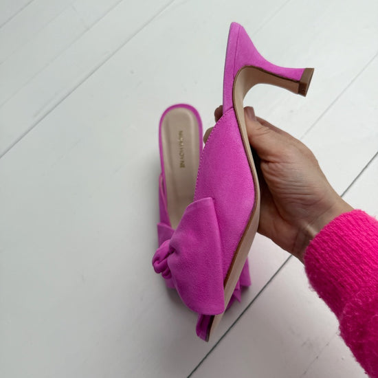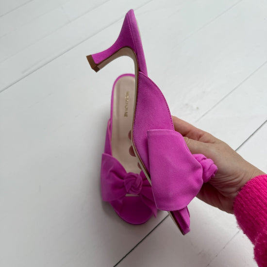 SECONDS - Bow Peep Toe Kitten Heel in Pink Suede