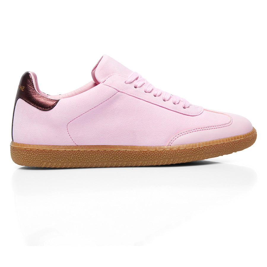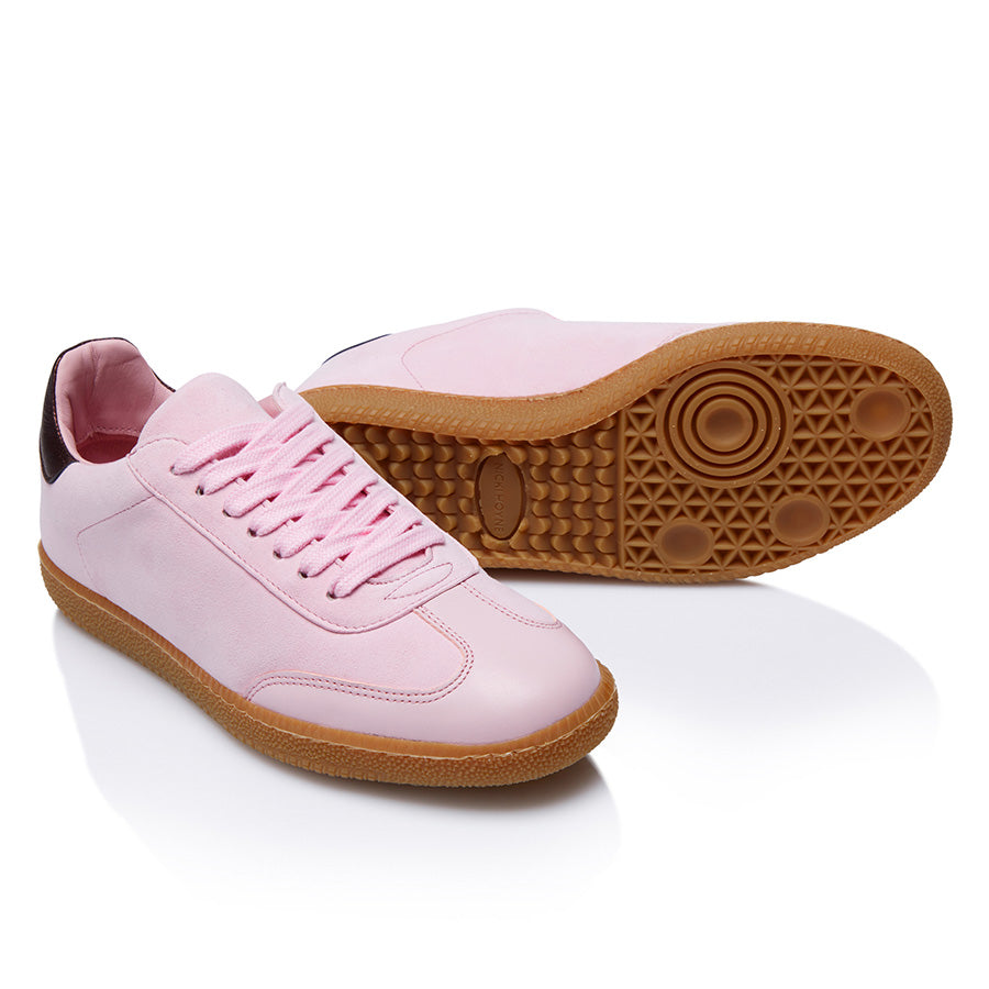 These beautifully designed trainers feature a soft pink suede and leather upper with a gum coloured rubber sole, offering a relaxed sporty shape that's both fashionable, pretty and comfortable. The metallic brown leather heel tab and soft pink leather toe offer a subtle textural contrast, in this feminine style.