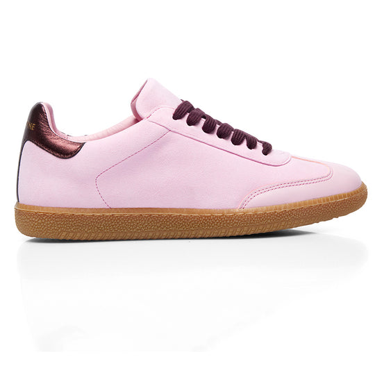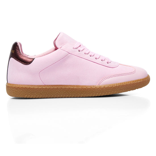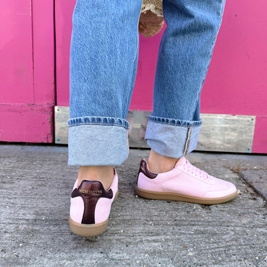These beautifully designed trainers feature a soft pink suede and leather upper with a gum coloured rubber sole, offering a relaxed sporty shape that's both fashionable, pretty and comfortable. The metallic brown leather heel tab and soft pink leather toe offer a subtle textural contrast, in this feminine style.