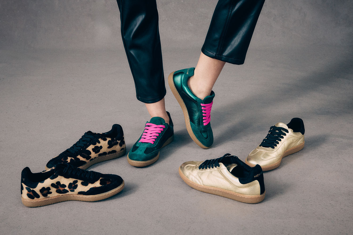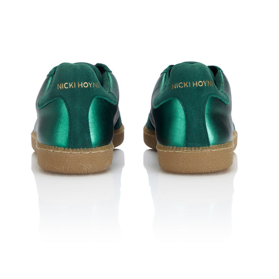The Nicki Hoyne Sporty Trainer in Emerald Metallic Leather is perfect for those who love to stand out while staying comfortable. With its mix of vibrant colours and textures, this trainer is sure to bring a fun, fashion forward touch to any outfit.