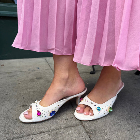 Crafted with luxurious blue suede, these heels boast small and large crystals intricately scattered throughout, creating a mesmerising sparkle with every step. They're not just shoes; they're cherished mementos that evoke joy and nostalgia every time you glance at them.